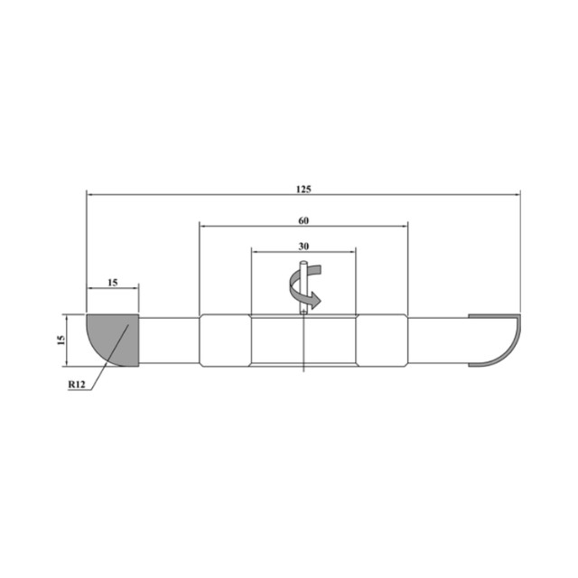 Konvexní čtvrtkruhová fréza s rádiusem 12 mm, průměr 125 mm, tloušťka 15 mm, 3 noži, R právo, SK, s pájenými břity a vnitřní průměr 30 mm. Frézovací hlava Woodmaster průmyslové kvality na dřevo s noži Tigra Germany z tvrdokovu (vidia).