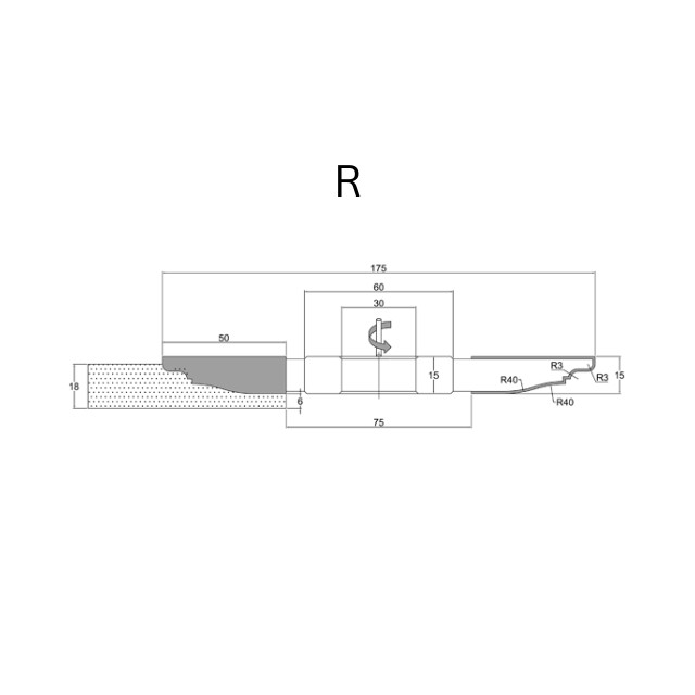 Fréza na výplně dveří 175x15x63x30 mm Z3, R právo nahoře, SK (HW HM) na masivní dřevo, MDF a další dřevěné materiály, plasty, rámové konstrukce, pro frézovaní výplní do dveří. Profesionální dřevoobráběcí frézovací nástroj, nástrčná fréza s břity z tvrdokovu (slinutý karbid) a komplexním, zakřiveným profilem pro truhlářské frézky, stolní frézka.