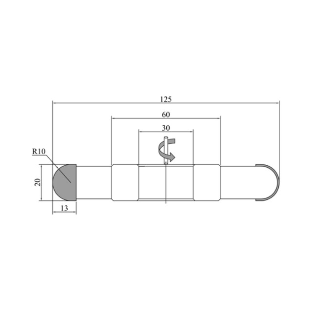 Konvexní půlkruhová fréza s rádiusem 10 mm, průměr 125 mm, tloušťka 20 mm, 4 noži, SK, s pájenými břity a vnitřní průměr 30 mm. Frézovací hlava Woodmaster průmyslové kvality na dřevo s noži Tigra Germany z tvrdokovu (vidia).