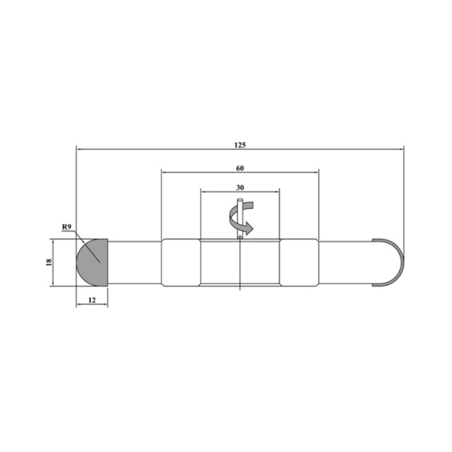 Konvexní půlkruhová fréza s rádiusem 9 mm, průměr 125 mm, tloušťka 18 mm, 4 noži, SK, s pájenými břity a vnitřní průměr 30 mm. Frézovací hlava Woodmaster průmyslové kvality na dřevo s noži Tigra Germany z tvrdokovu (vidia).