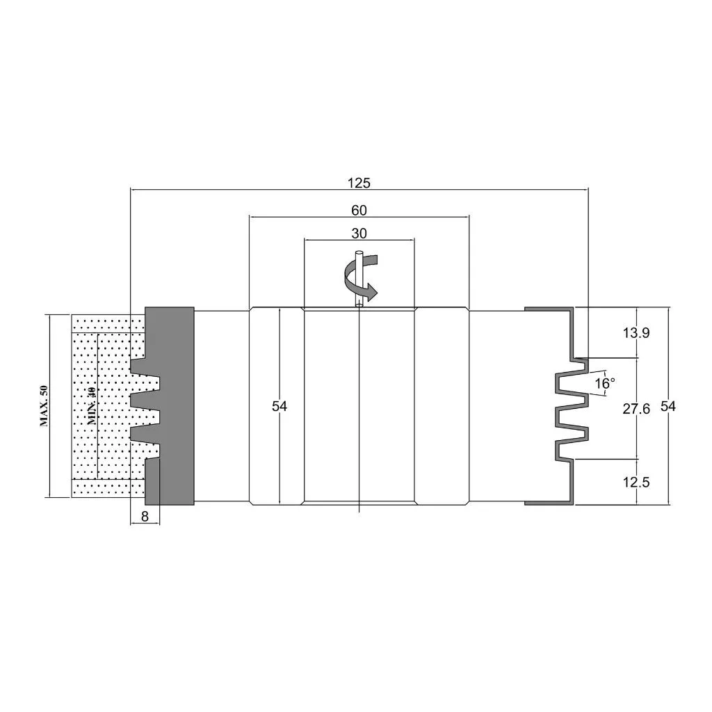 Fréza na spoje o průměru 125 mm, tloušťce 50 mm, maximální hloubce 9 mm, 3 noži, SK, s pájenými břity a vnitřní průměr 30 mm. Frézovací hlava Woodmaster průmyslové kvality na dřevo s noži Tigra Germany z tvrdokovu (vidia).