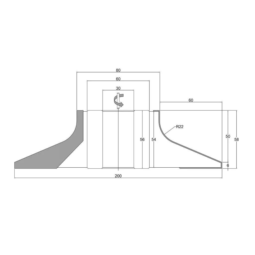 Fréza profilová o průměru 200 mm, tloušťce 58 mm, 4 noži, SK, s pájenými břity a vnitřní průměr 30 mm. Frézovací hlava Woodmaster průmyslové kvality na dřevo s noži Tigra Germany z tvrdokovu (vidia).